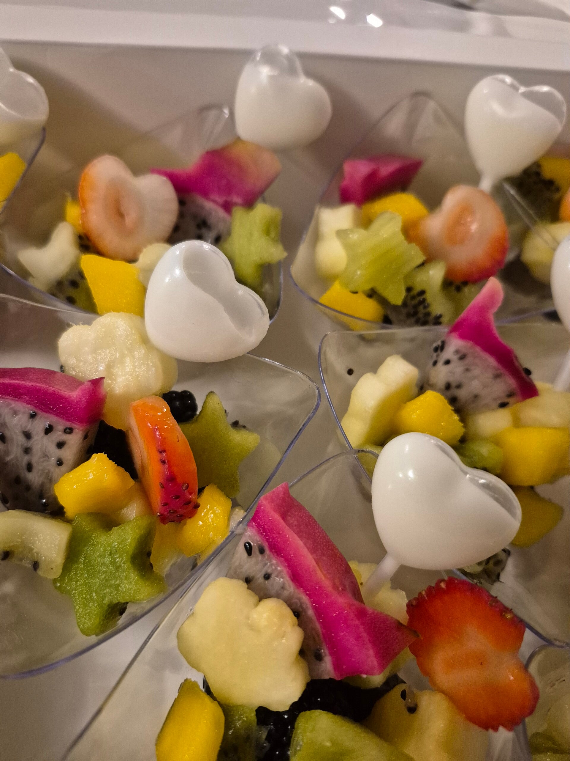 Fresh, vibrant, and naturally sweet—our fruit cups are a refreshing treat for any occasion! Each cup is filled with a colorful mix of seasonal fruits, hand-cut and perfectly portioned for easy snacking. Whether you're hosting a brunch, planning a picnic, or looking for a healthy party favor, these fruit cups are a beautiful and delicious choice.