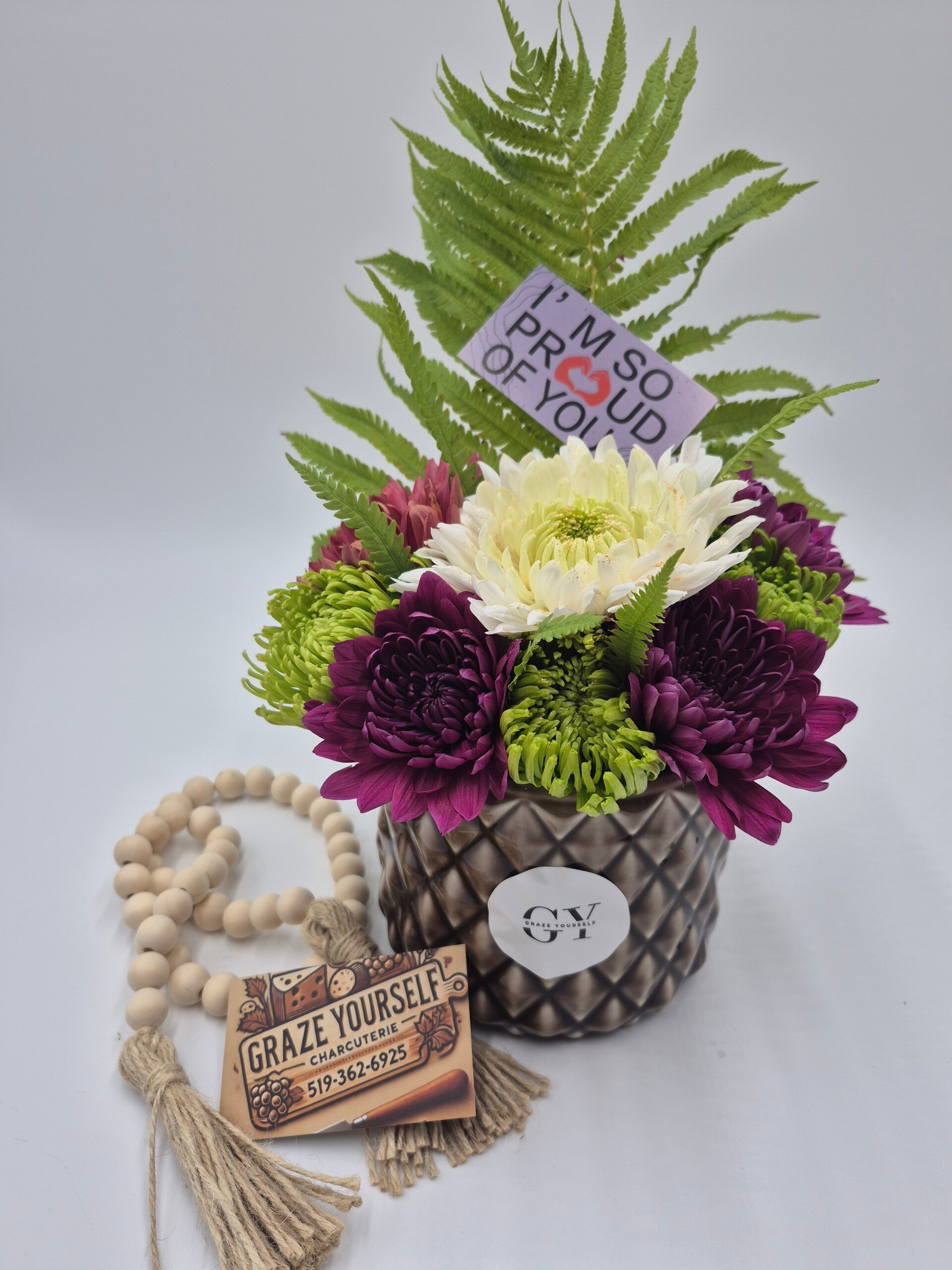Elevate your order with a stunning floral touch! Our handcrafted flower arrangements are the perfect add-on to complement your charcuterie trays, crudités, or grazing tables.