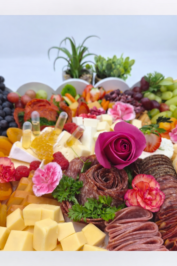 Our Custom Large Trays are designed to impress and perfect for any celebration or gathering. Each tray measures 21” x 14” and comes beautifully arranged with a curated selection of premium cheeses, meats, fresh fruits, crackers, and gourmet accompaniments—tailored to your preferences.
