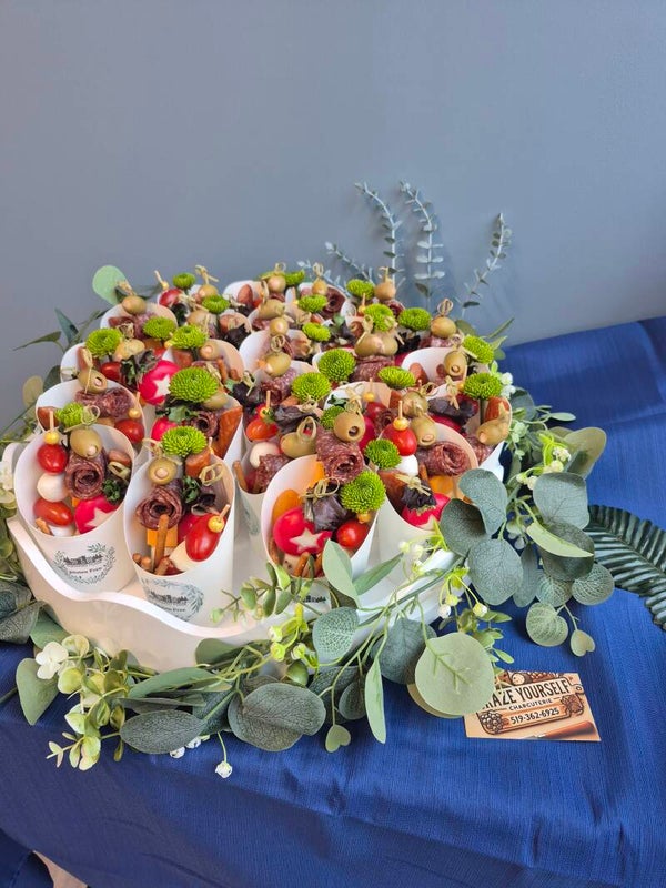 Our gluten-free charcuterie cups are the perfect individual option for guests with dietary needs — without sacrificing flavor or presentation. Each cup is thoughtfully curated with premium meats, artisan cheeses, fresh fruits, crisp vegetables, and gluten-free crackers, all beautifully arranged for a grab-and-go grazing experience.